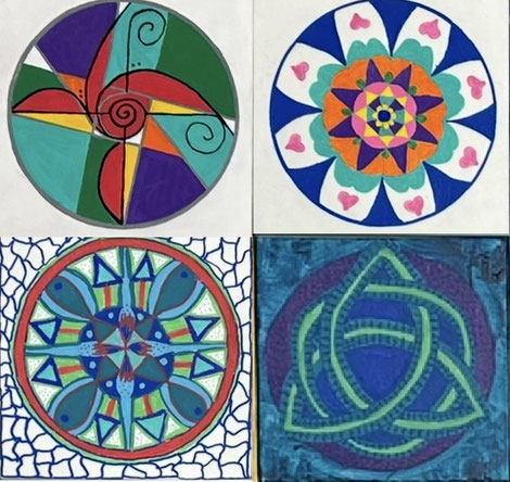 Mandalas repeating patterns replicate nature and are perfect for using Posca (acrylic) pens to add colour and design. Herta was inspired to begin experimenting with Posca Pens by another artist whose large scale art works, using only Posca Pens, amazed Herta.